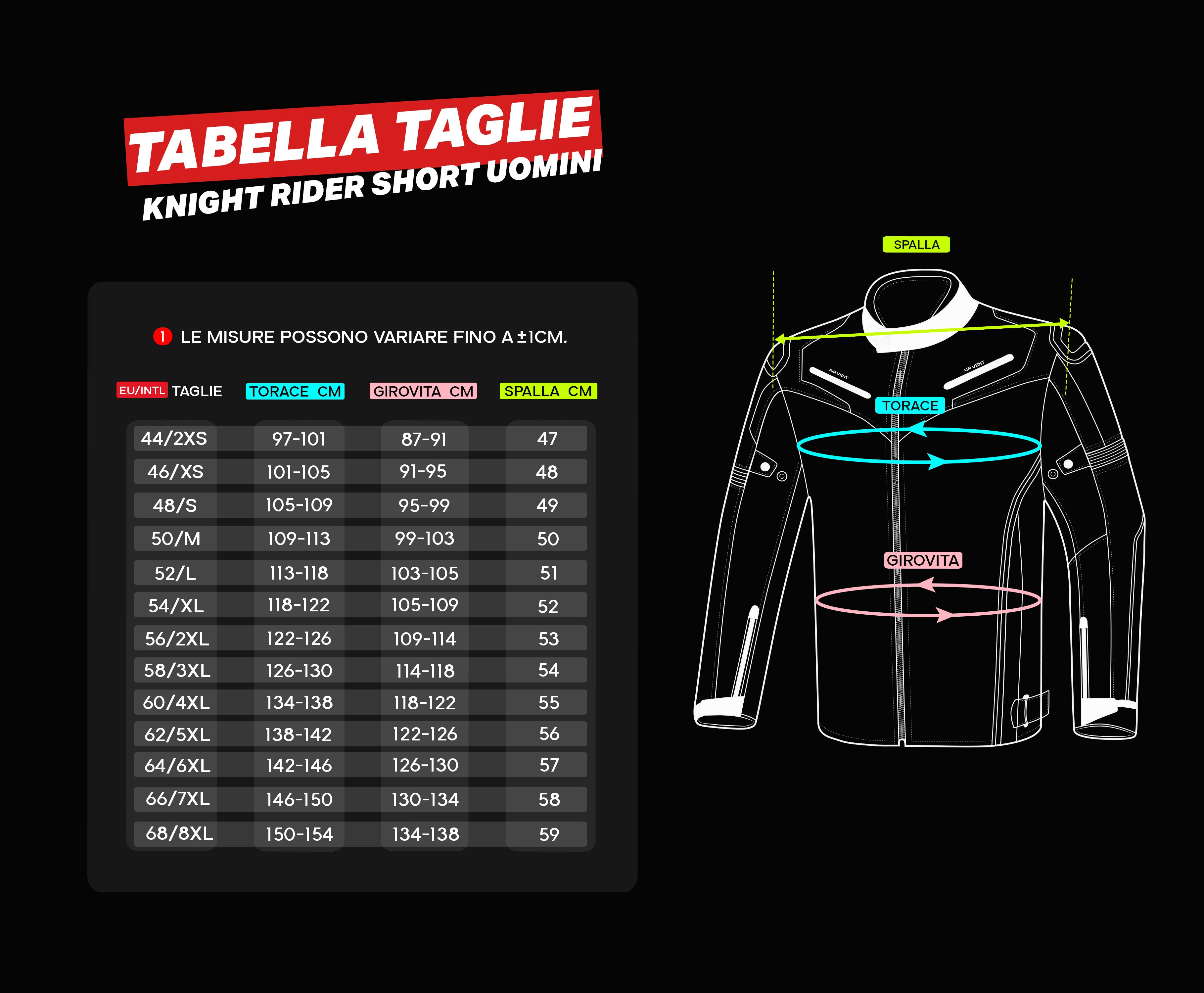 La R-Tech Knight Rider non è solo una giacca da moto, ma la compagna definitiva per ogni stagione dell'anno. Progettata per offrire la massima protezione, comfort regolabile e ampio spazio di stivaggio, combina materiali di alta qualità, tecnologia avanzata e un design funzionale che si adatta a tutte le condizioni climatiche e tipi di guida.