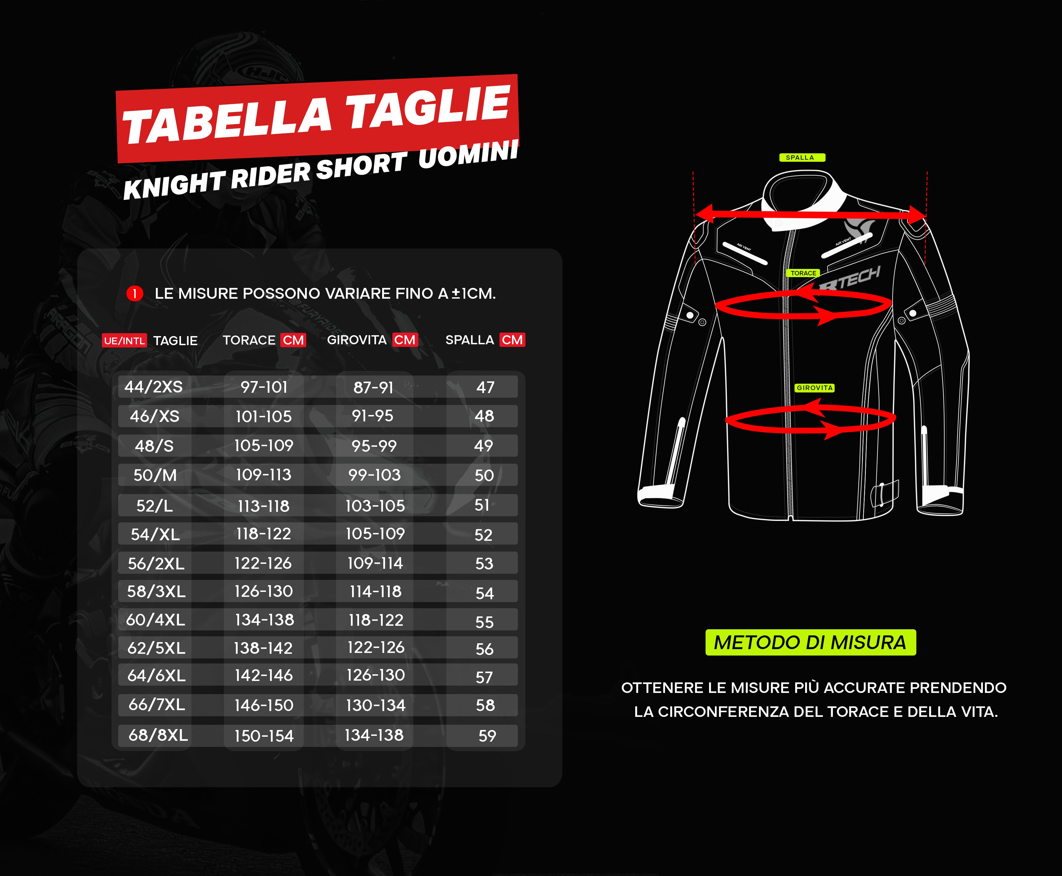 La R-Tech Knight Rider non è solo una giacca da moto, ma la compagna definitiva per ogni stagione dell'anno. Progettata per offrire la massima protezione, comfort regolabile e ampio spazio di stivaggio, combina materiali di alta qualità, tecnologia avanzata e un design funzionale che si adatta a tutte le condizioni climatiche e tipi di guida.